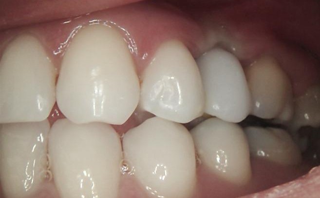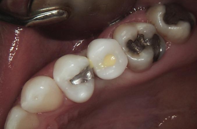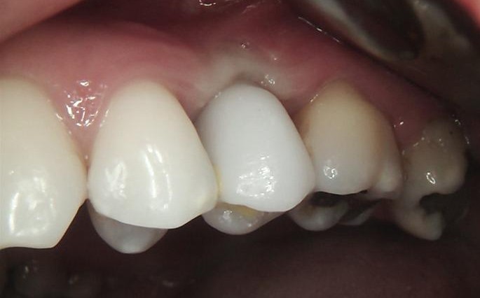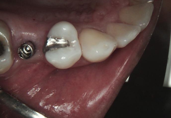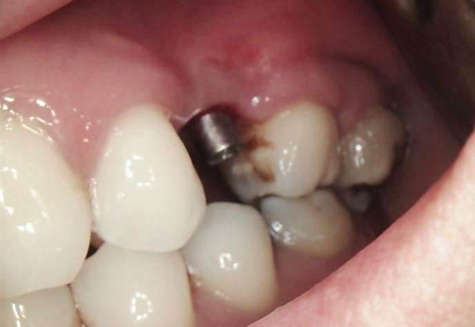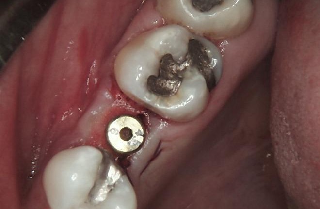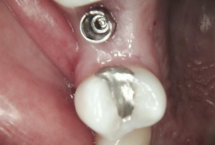 After successful osseointegration, the definitive restoration was delivered using a Ti-base-supported crown, held by Dr Carmy.