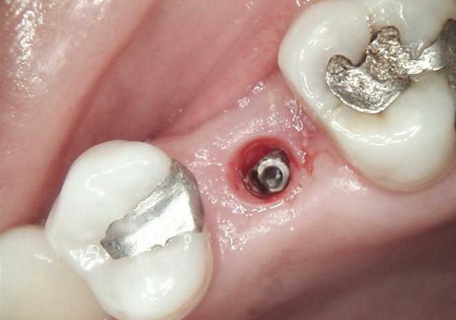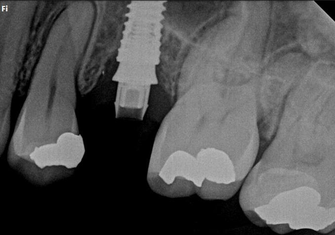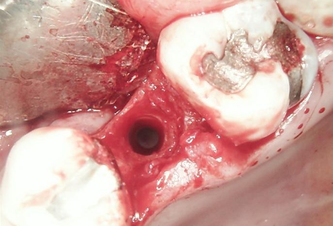 A new implant was inserted in a prosthetically driven position, ensuring primary stability.