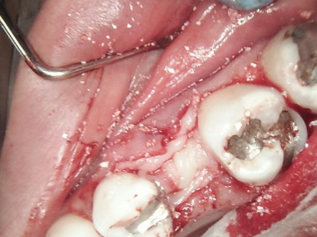 Surgical site was sutured to allow uneventful healing.